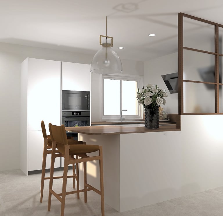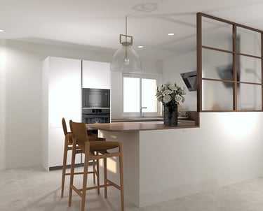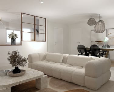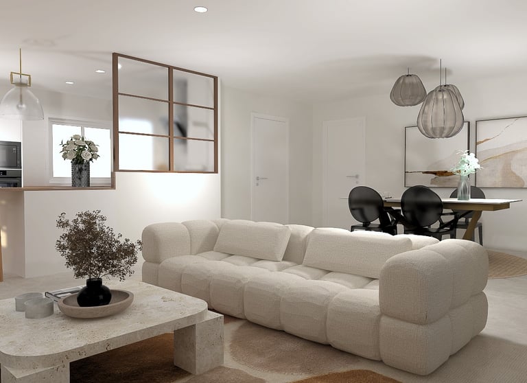 Conception d’un espace de vie contemporain alliant élégance, luminosité et convivialité.